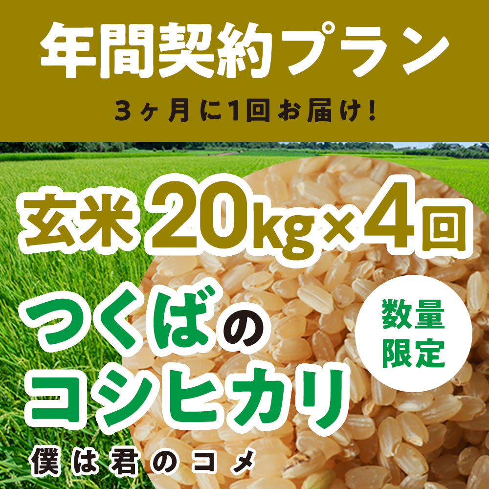 年間契約プラン【2025年新米】【玄米20kg×4回(計80kg)】農家直送つくばの低農薬コシヒカリ「僕は君のコメ」(9月末までの申し込み限定・数量限定)